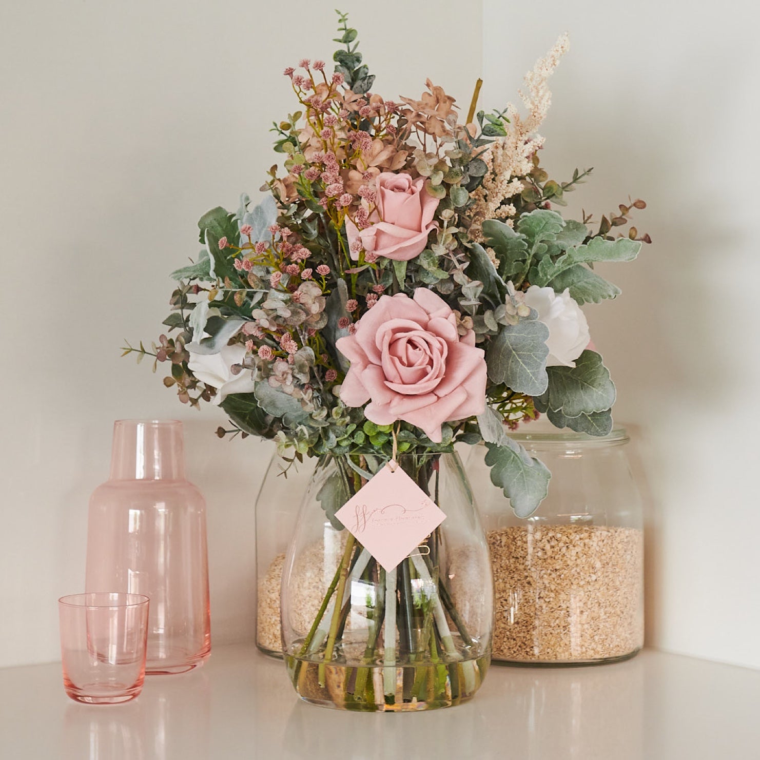 Rose, Dusty Miller and Eucalyptus Arrangement