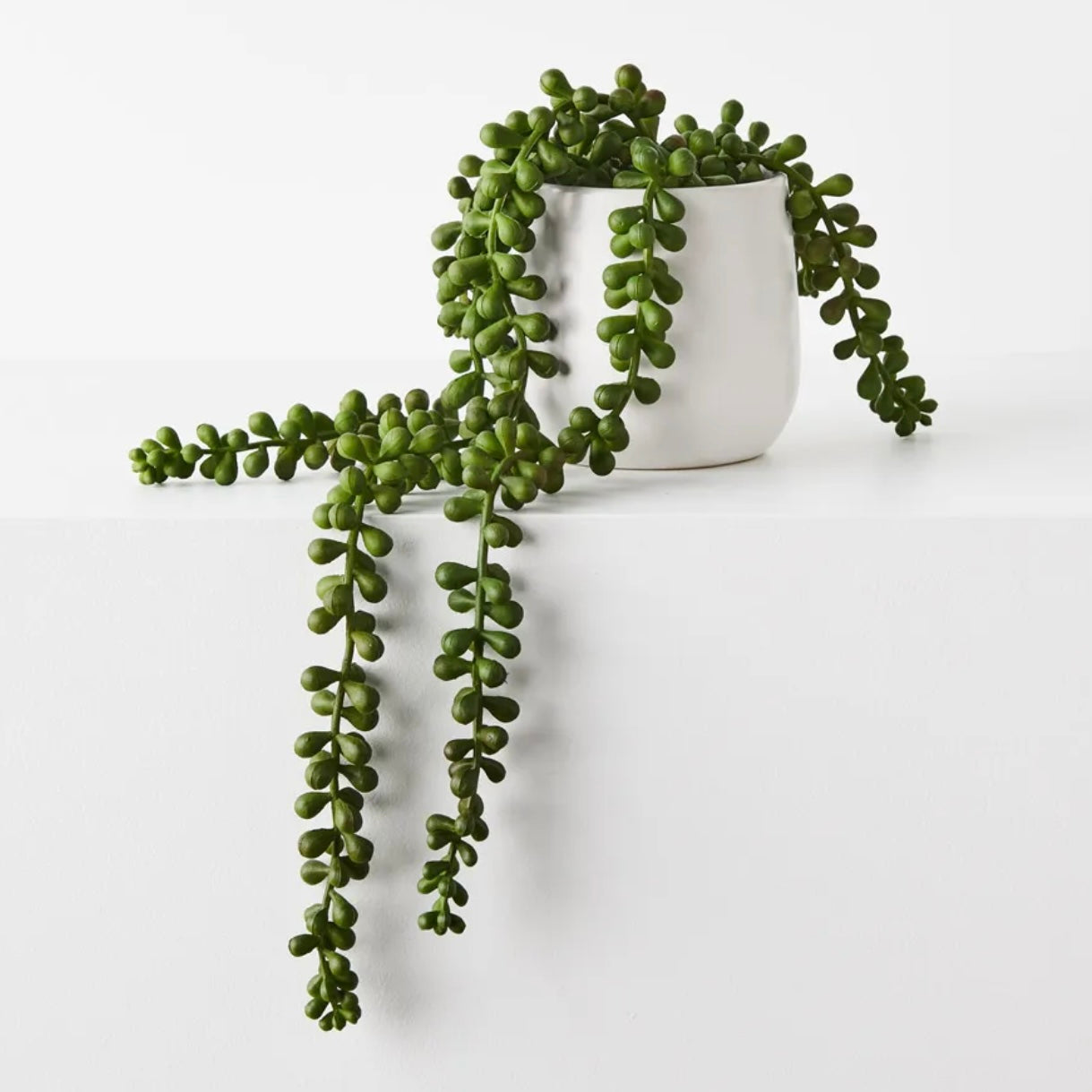 String of Pearls in White Ceramic Pot.