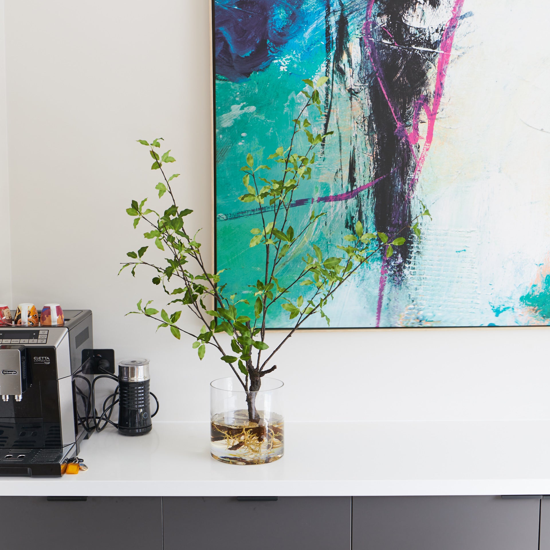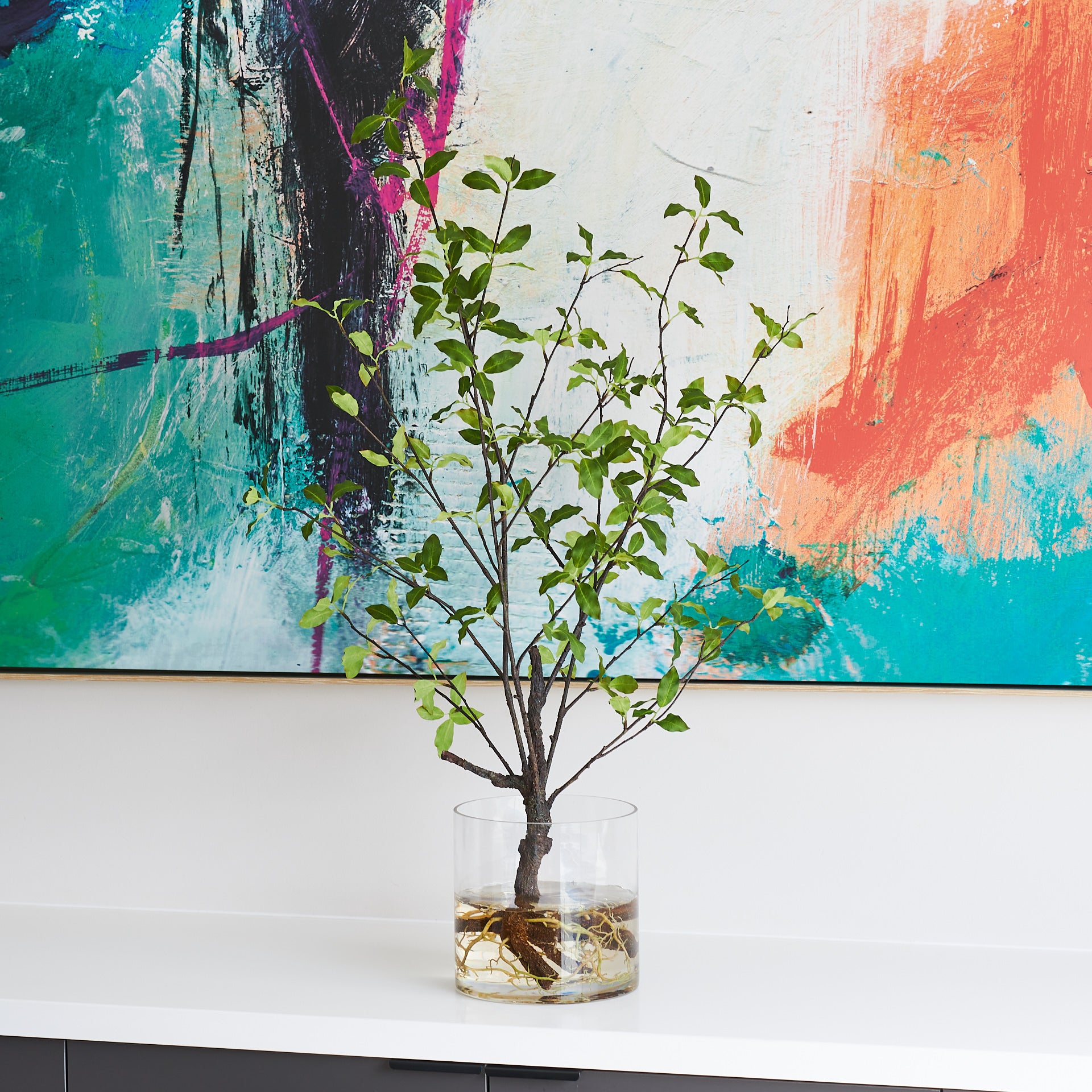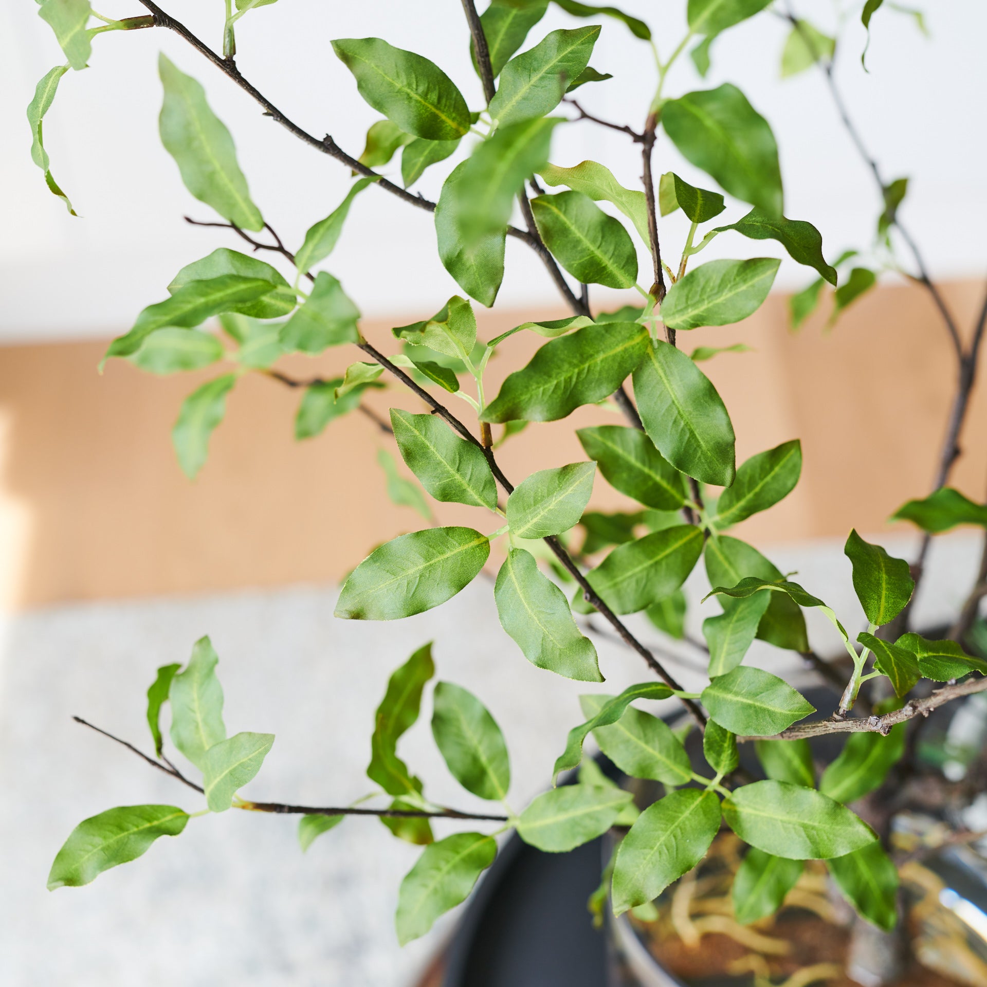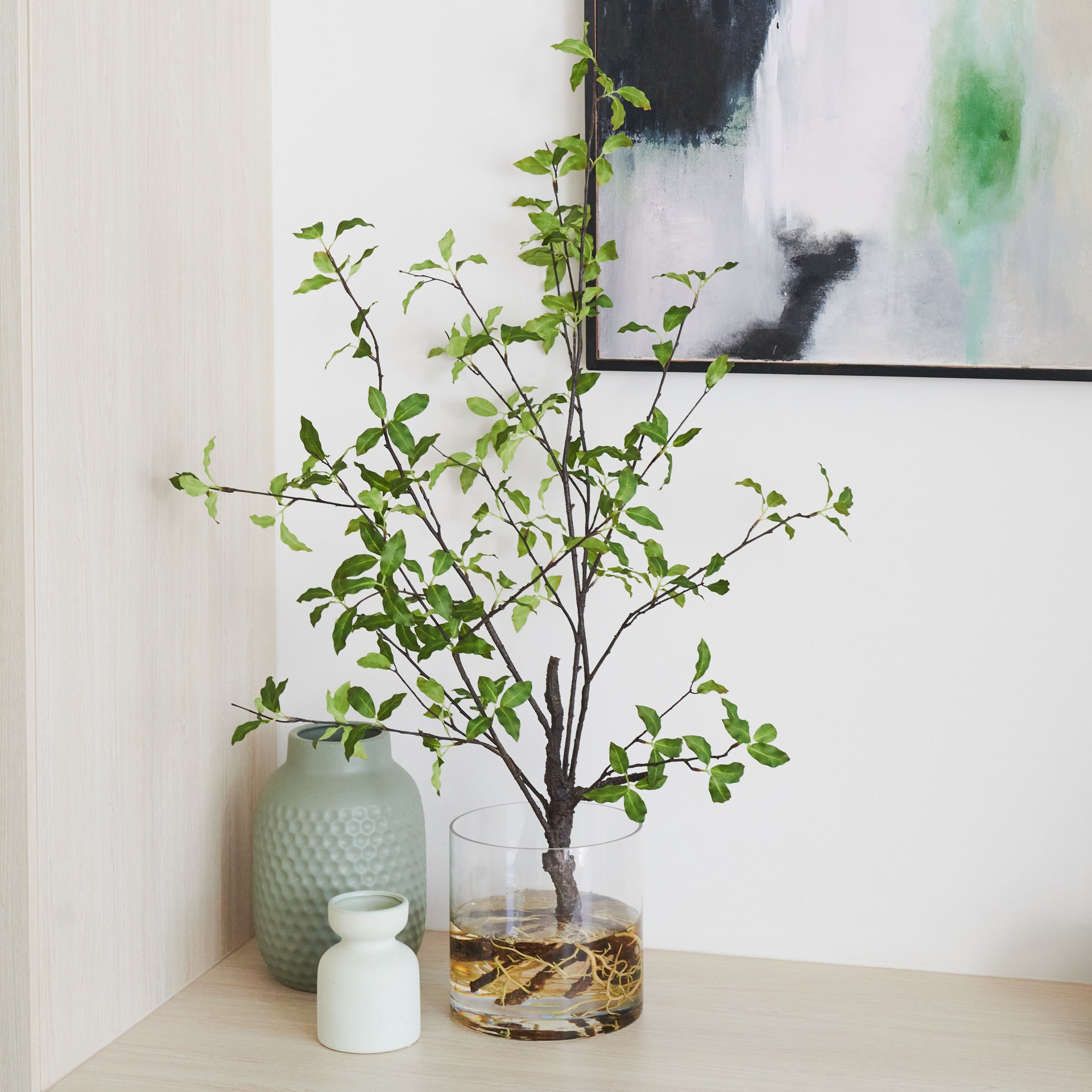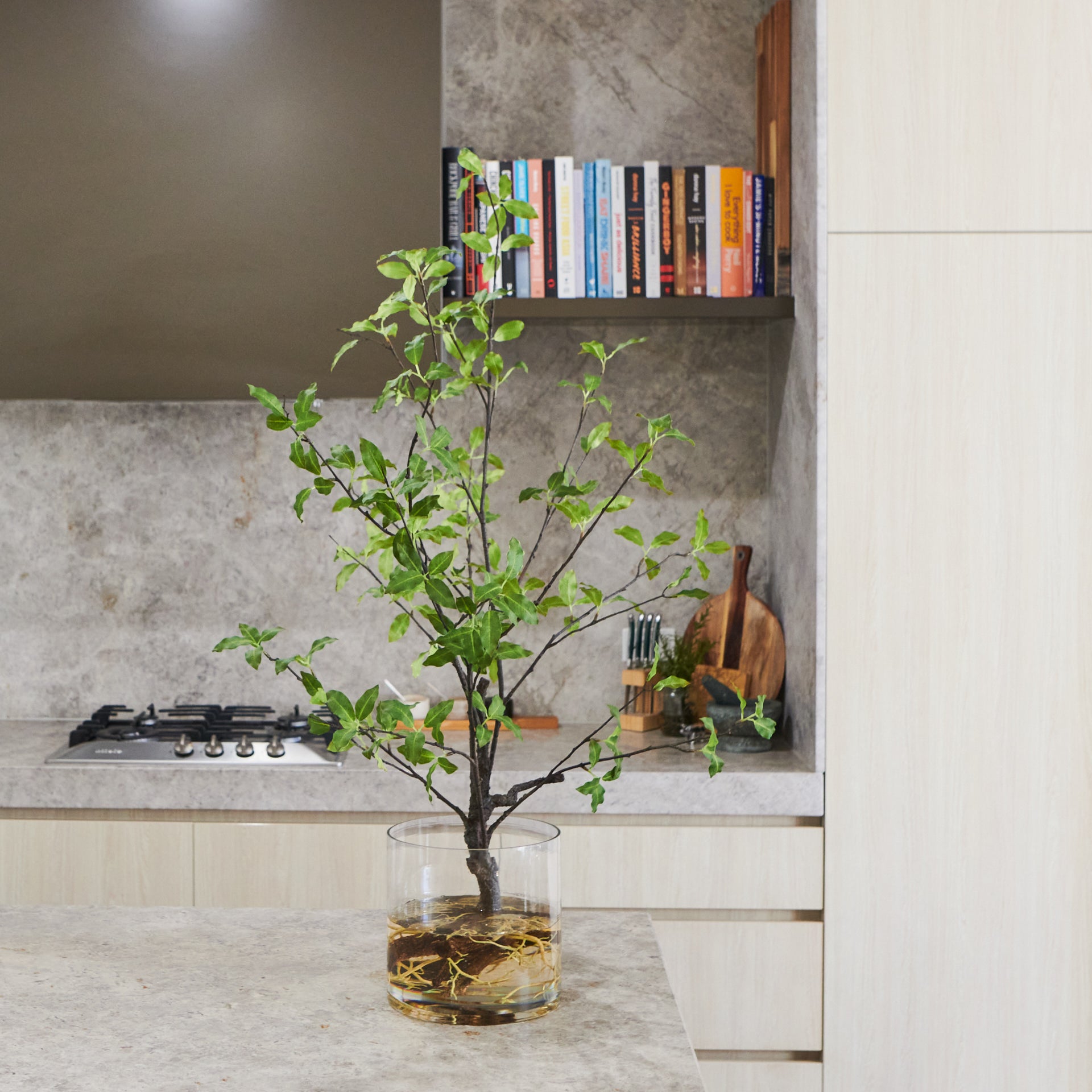 Real Touch Pittosporum Plant set in Glass Vase in Artificial Water. This is a 360 degree arrangement.