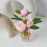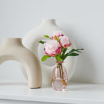 Charlene : Pink Peony Roses set in a Pink Glass Vase in Artificial Water.