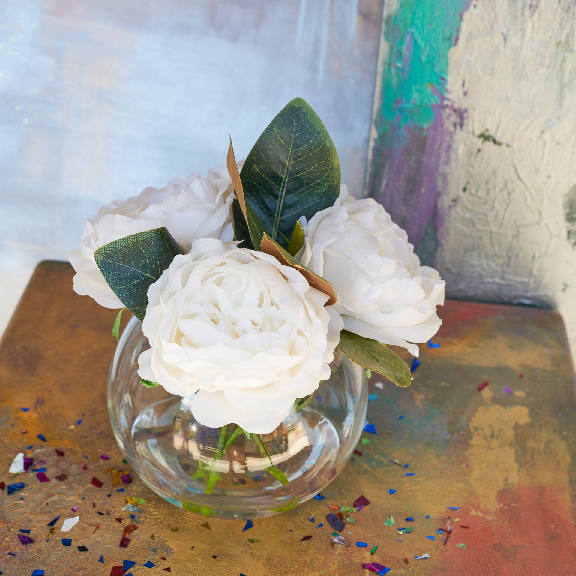 Real Touch Peonies and Magnolia leaves in Small Fishbowl all permanently set in Artificial Water.