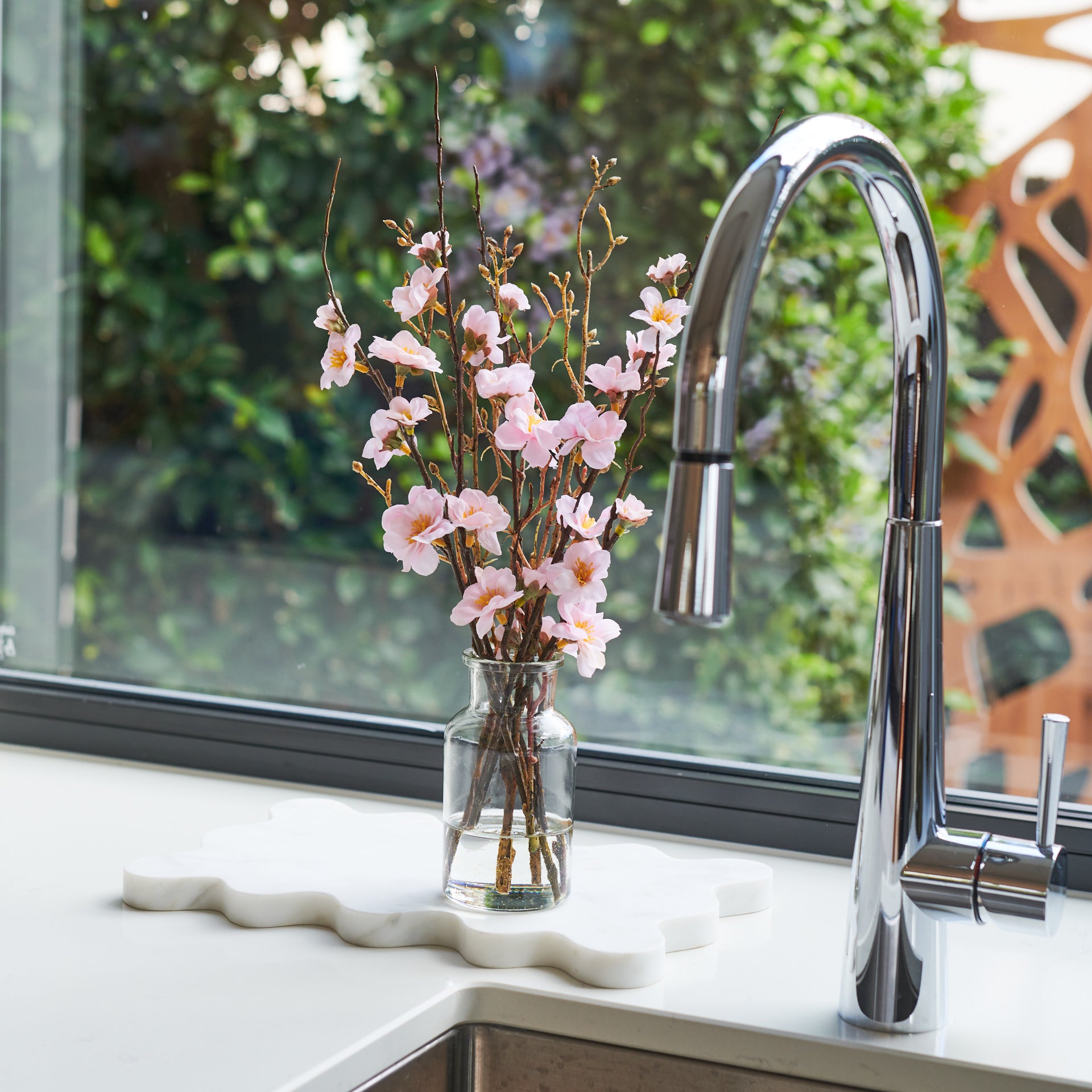 Sakura : Real Touch Cherry Blossom set in Artificial Water in glass vase.