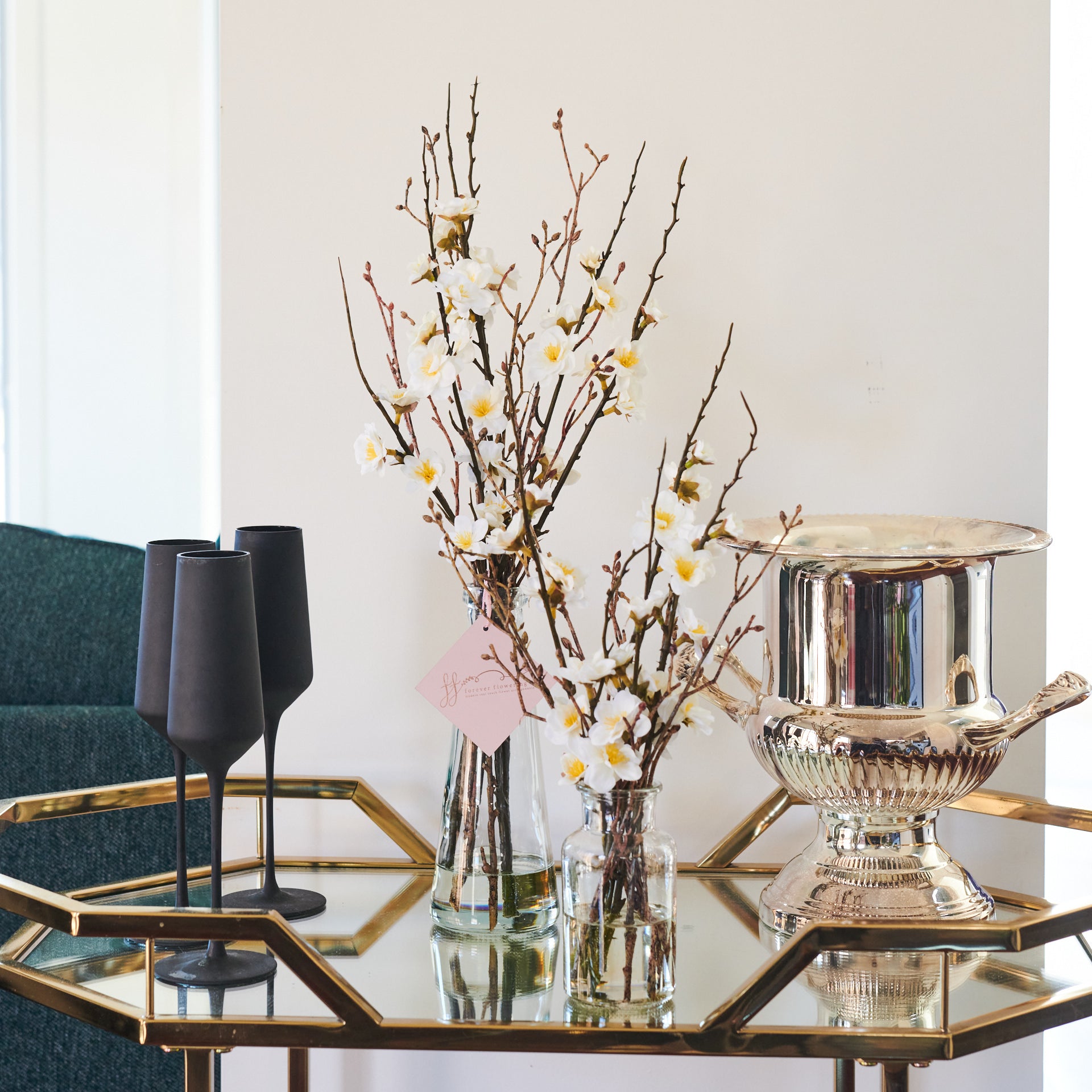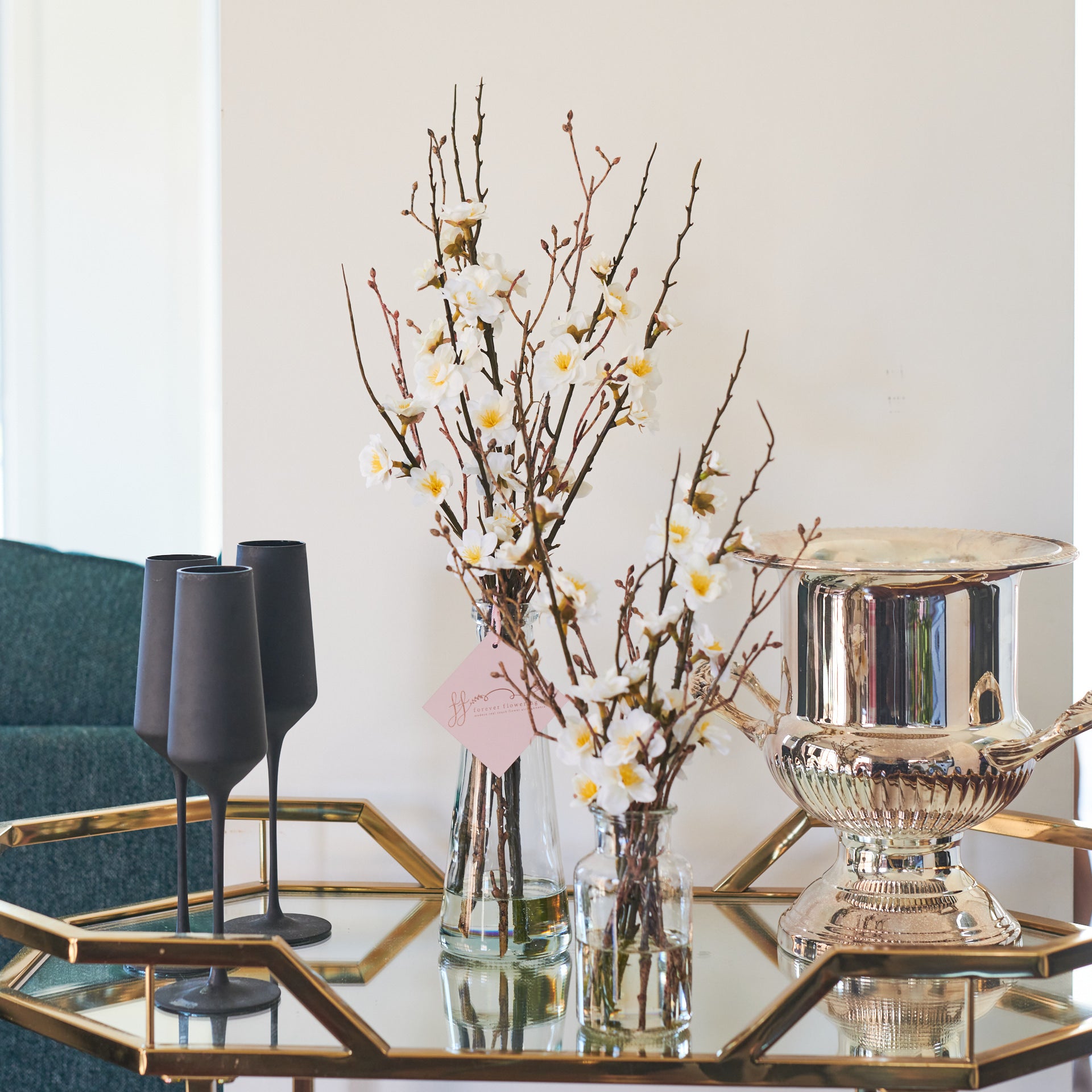 Sakè : Real Touch Cherry Blossom set in Artificial Water in glass vase.